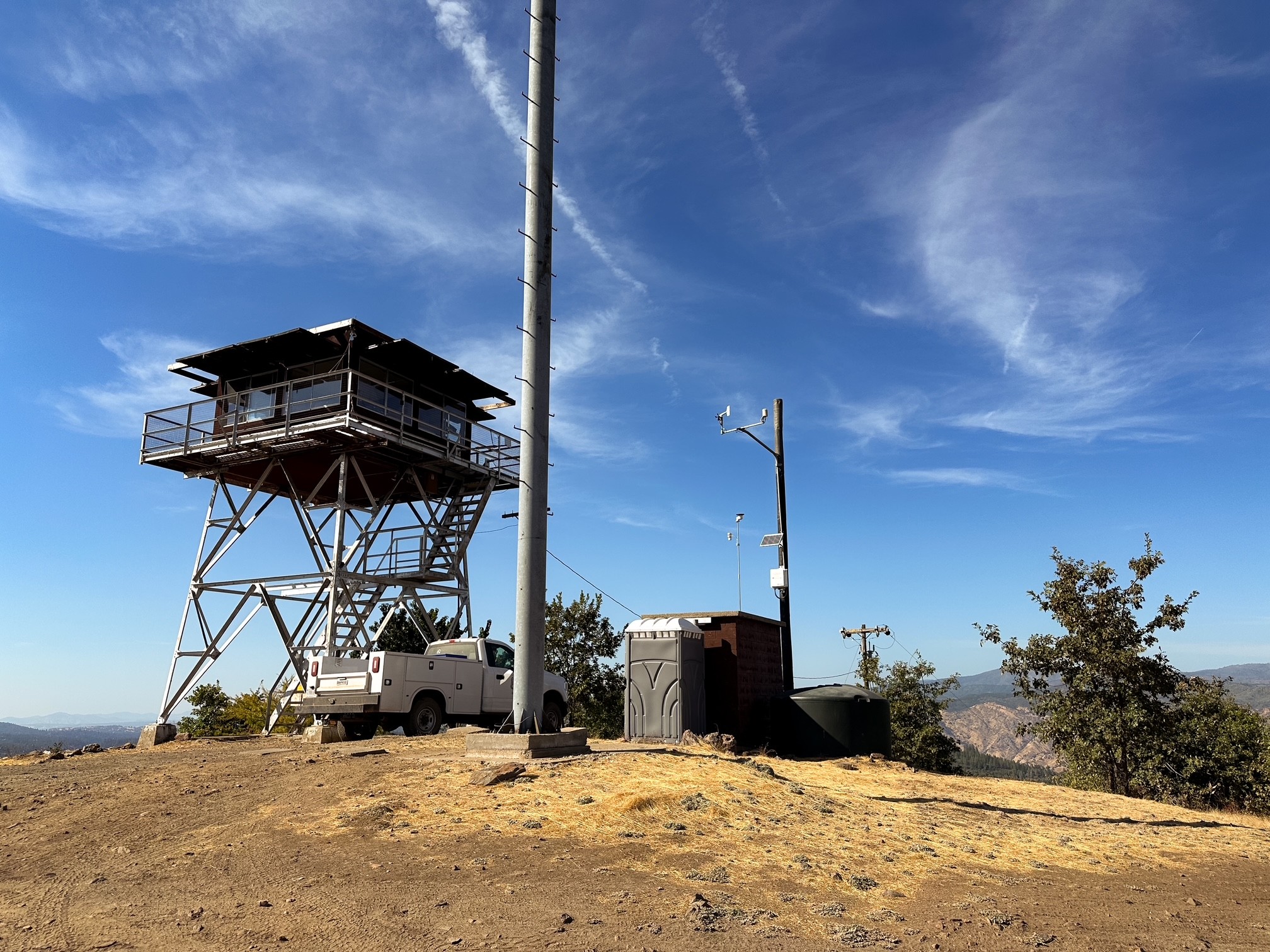 We started our hike from behind the gate and took the first dirt road leading right. It was not clear which road at the four way junction was correct, but when in doubt head for the road leading up. This road passed two large water tanks and skirted the edge behind the properties to climb the last bit of the ridge. It’s a fairly short walk and the summit opens up once you come around the last corner. The road continues farther to provide access to a communication tower. The ridge itself is wide and flat with limited views, but the lookout structure is interesting. You don’t typically see 3-story fire lookouts in National Parks. This pocket of the park felt very tucked away and forgotten. We didn’t stay long due to limited daylight and the additional drive time back to camp. Strava calculated this at 1.76 miles RT with 174′ of elevation gain.