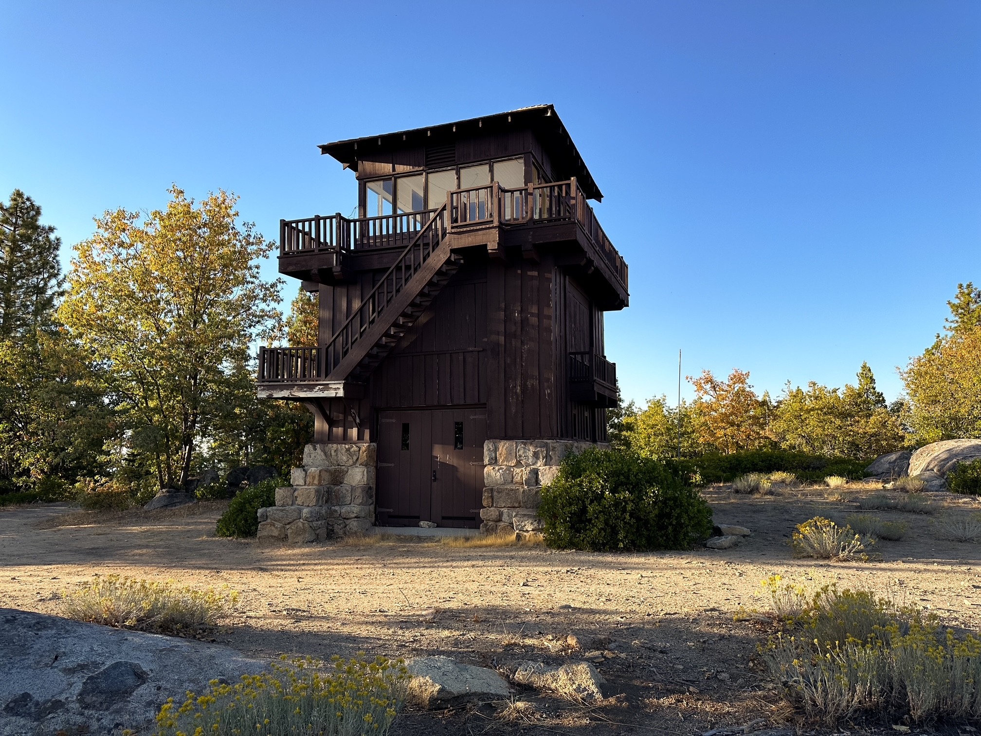 Henness Ridge was the second fire lookout built in Yosemite National Park by the CCC in 1934. It is a 3-story rustic National Park style lookout with a 13’x13′ cab and catwalk on top. The first level was used for garage and storage while the second level was the living quarters. The site was actively staffed into the 1980s. Some note it for possible emergency use by the park, but I believe it stands more as an exhibit to what once was here.