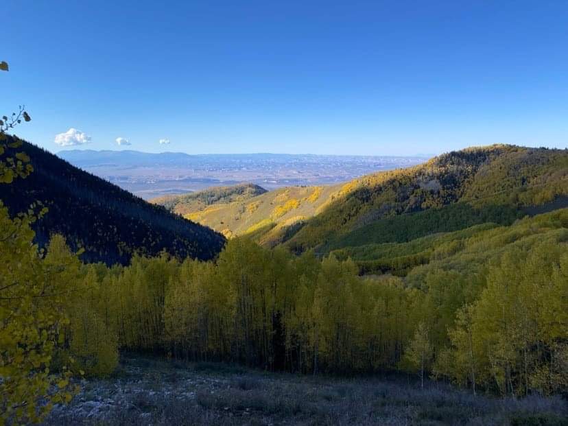 Looking out from the highest point of Moab 240 in the La Sals