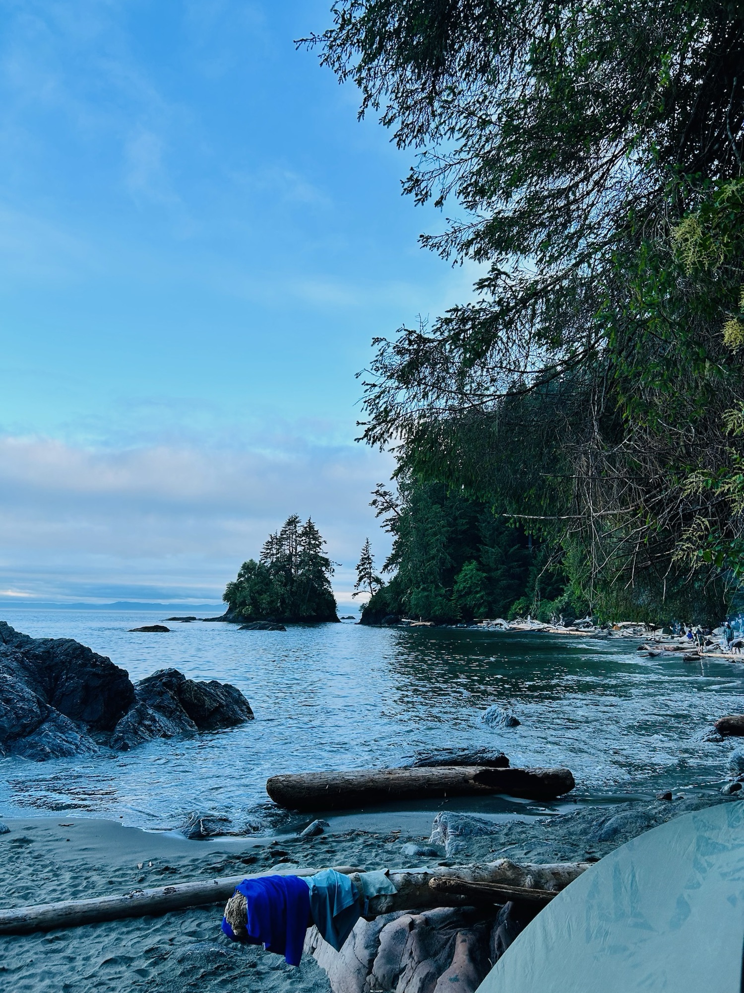 The rest of the night passes with us sitting around the fire, watching the grey whales continue to roll among the quiet water. We are mostly being ridiculous together; my favourite way to be, and a few moments of silence as we soak it all in. Driftwood smoke floating like thoughts unsaid between us. That’s ok. Not everything needs words.
